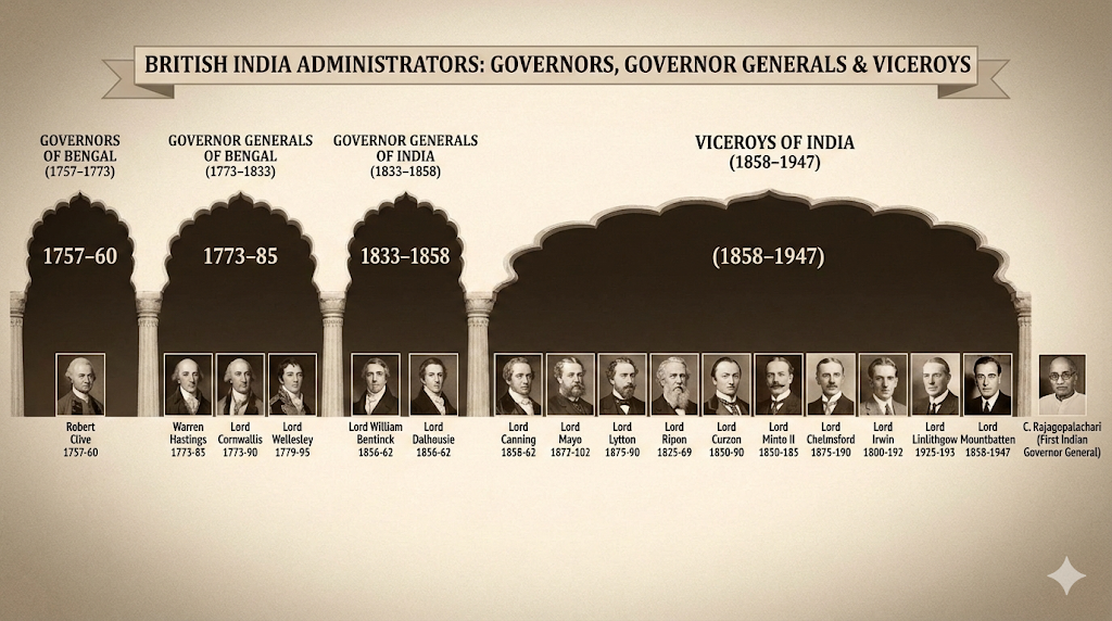 Governors, Governor Generals, and Viceroys in British India